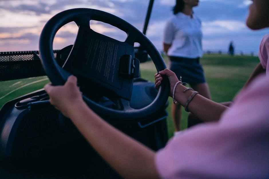 Mastering the steering and maneuvering of your Yamaha G2 golf cart is essential for a smooth and safe ride․ Begin by firmly gripping the steering wheel and adjusting the tilt column for optimal comfort․ Use gentle, controlled movements to navigate turns and obstacles․ The Yamaha G2 features precise steering and a responsive design, allowing for easy handling on various surfaces․ Engage the accelerator gradually to maintain momentum while steering․ Always use the direction indicators to signal turns and ensure visibility on the course․ Practice efficient steering techniques to enhance control and minimize wear on the tires․ By mastering these skills, you can enjoy a smooth and enjoyable ride with your Yamaha G2 Golf Cart․